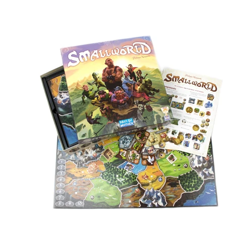 Within Small World there are 14 different races and 20 different powers. At the start of the game, each player will choose a random combination of race and power allowing different changes to the game and a different amount of race tokens. Each round a player will claim territory with their race tokens and score points based on how many they have conquered.