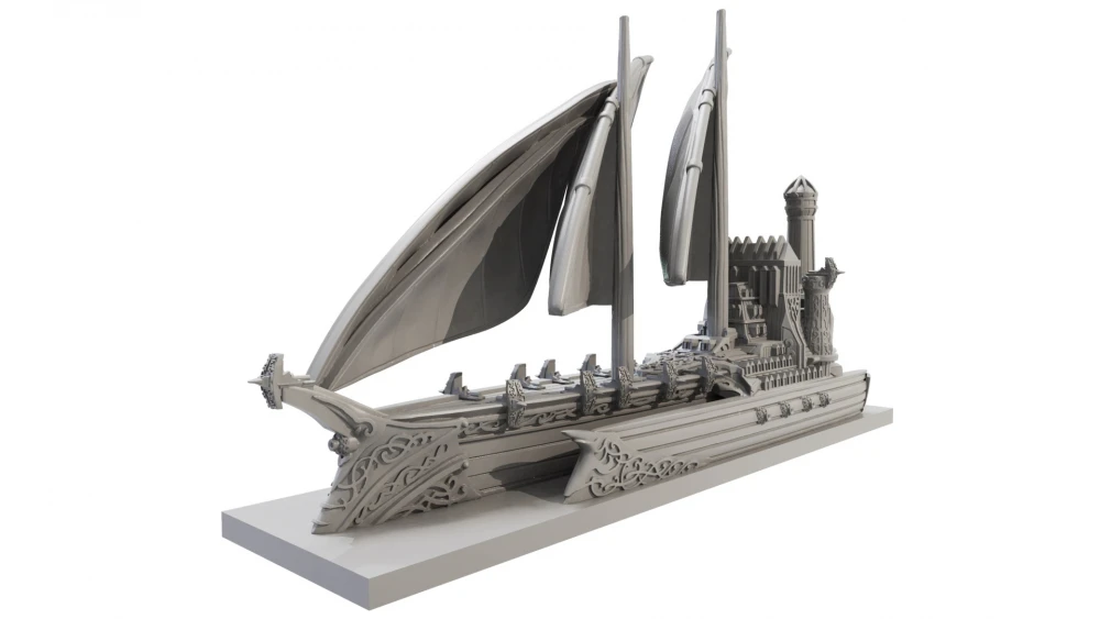 Developed from the Stormcaller trimarans with which the elves first conquered half the world’s oceans, Valandors are triple-hulled, lateen-sailed warships, whose size belies their staggering speed and manoeuvrability.