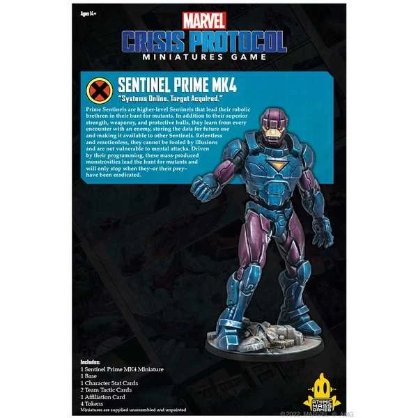 A Prime Sentinel leads its robotic brethren into the battles of Marvel: Crisis Protocol in this new pack! A higher-level Sentinel that leads the hunt for mutants, the Sentinel Prime found in this pack features superior strength, weaponry, and protective hulls, making it even more of a threat. Even more dangerously, Prime Sentinels learn from every encounter with an enemy and make the data available to other Sentinels. Leading the new Sentinels Affiliation, the Sentinel Prime works particularly well with Mark IV Sentinels and Cassandra Nova. Finally, two Team Tactic cards further enhance its ability to lead the Sentinels and expand their sphere of influence.