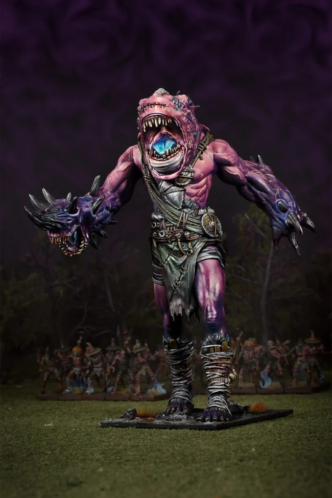 Titans of the ether, these former giant Cyclopes retain only a passing resemblance to their long forgotten mortal forms. Now, they are covered in weeping sores, extra mouths, wicked spines, and hands that have fused into fleshless lumps of solid bone.