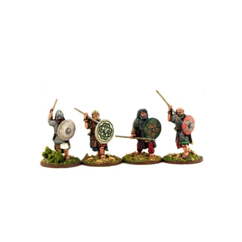 Four figures from a selection. Come with appropriate separate weapons, cast-on Dark Age Large Round shields & Renedra plastic bases.