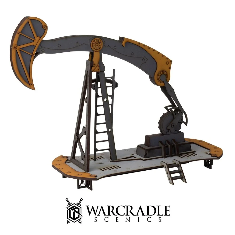 Derricks are dotted about everywhere in Promethean Complexes. Used for moving heavy loads where it might be required and a construct wouldn’t be practical, they are also converted to pump jacks on occasion. These ubiquitous sights with their hypnotic, repetitive movements are symbolic of the barely human constructs that seem to act the same, all for the benefit of the Covenant of the Enlightened and their goal of global control.