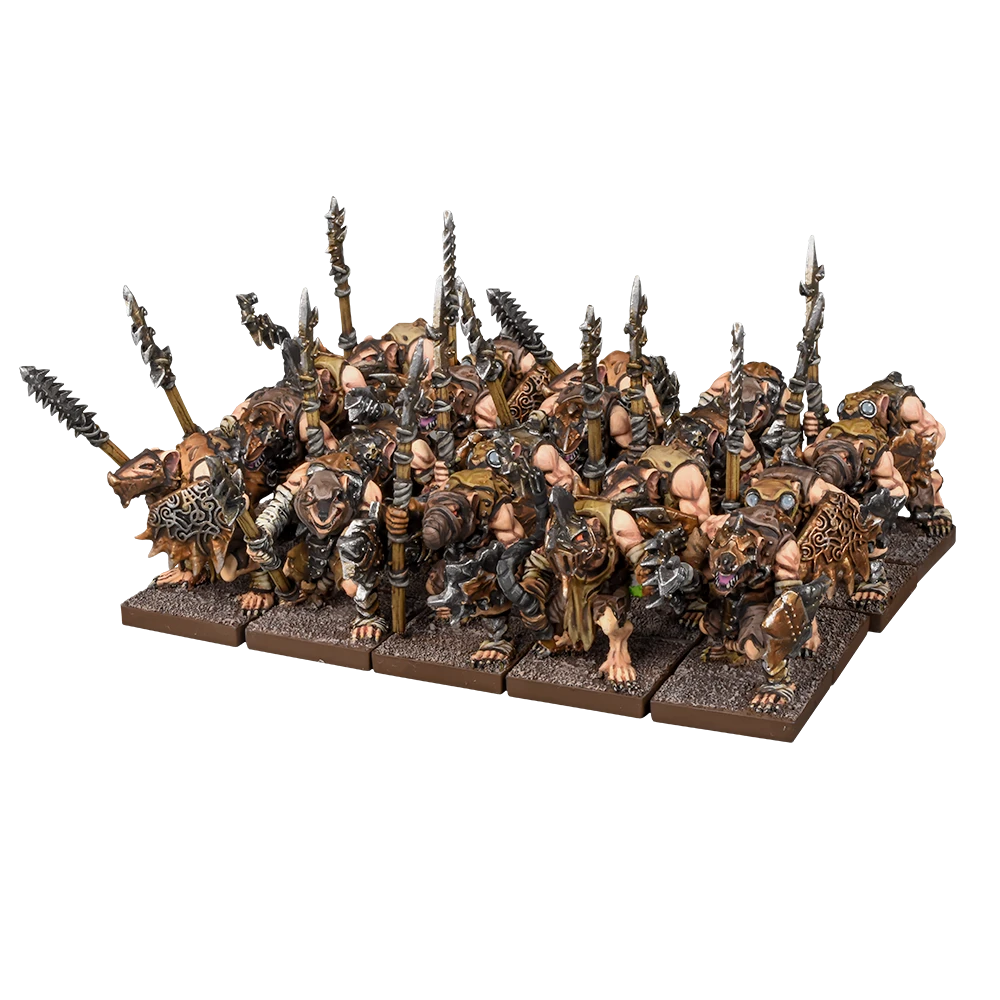 The backbone of a Ratkin warhost is a seething mass of hatred, teeth, and claws. Their Warriors form vast blocks of chittering steel and matted fur and large bristling units of spear-wielding troops are often seen defending the Ratkin flanks from marauding cavalry.
