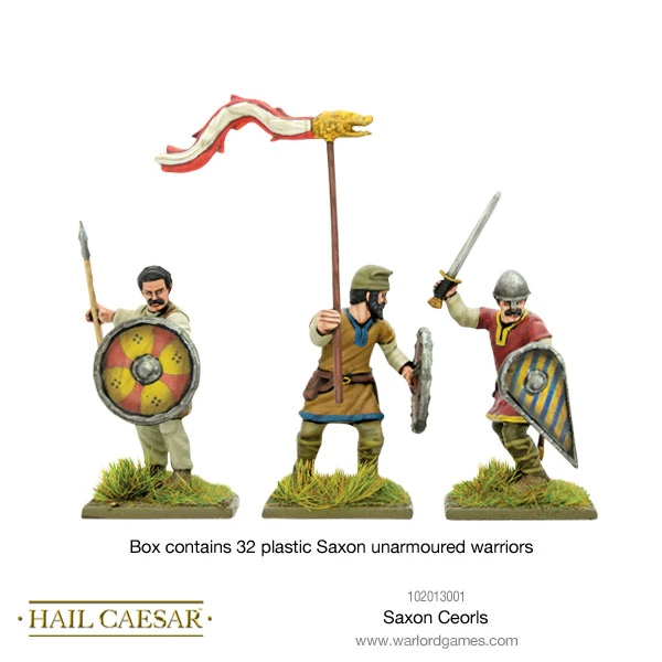 Unarmoured and armed with spears, swords and axes, Ceorls rallied under the dragon standards at their lordβs call to arms.