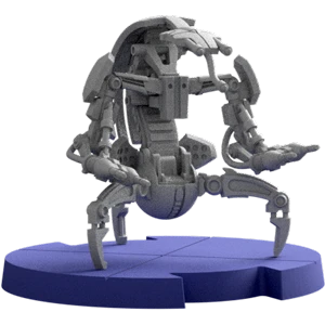 Versatile and extremely destructive, Droidekas are a threat to even veteran squads of clone troopers and skilled Jedi Knights—and when B1 Battle Droids fail, droidekas are often sent to execute their primary function: annihilation of their targets. Rolling swiftly into battle, droidekas unleash their arm-mounted twin blasters, pouring out withering torrents of fire.