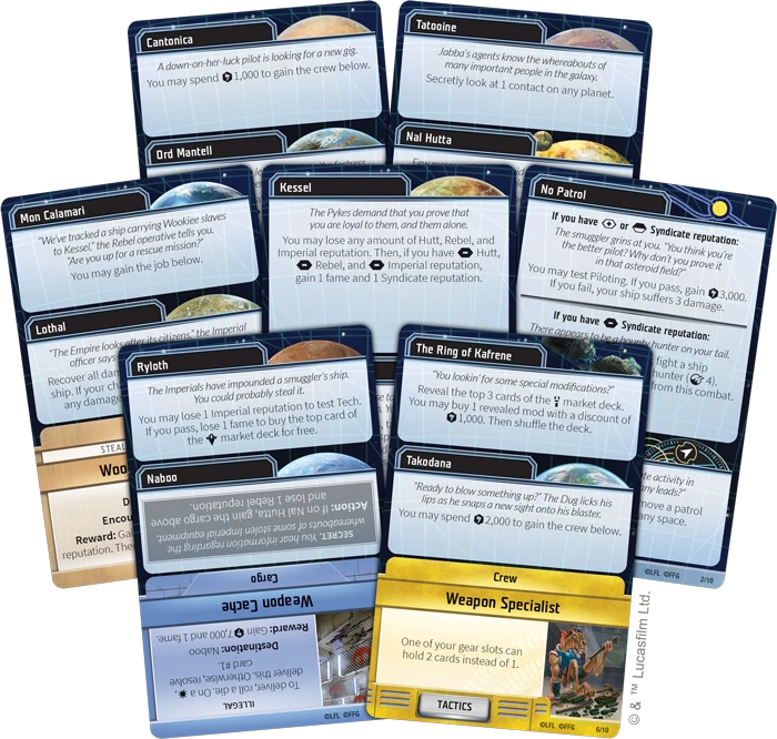 In Outer Rim, you take on the role of an underworld denizen, setting out to make your mark on the galaxy. You’ll travel the outer rim in your personal ship, hire legendary Star Wars characters to join your crew, and try to become the most famous (or infamous) outlaw in the galaxy!
