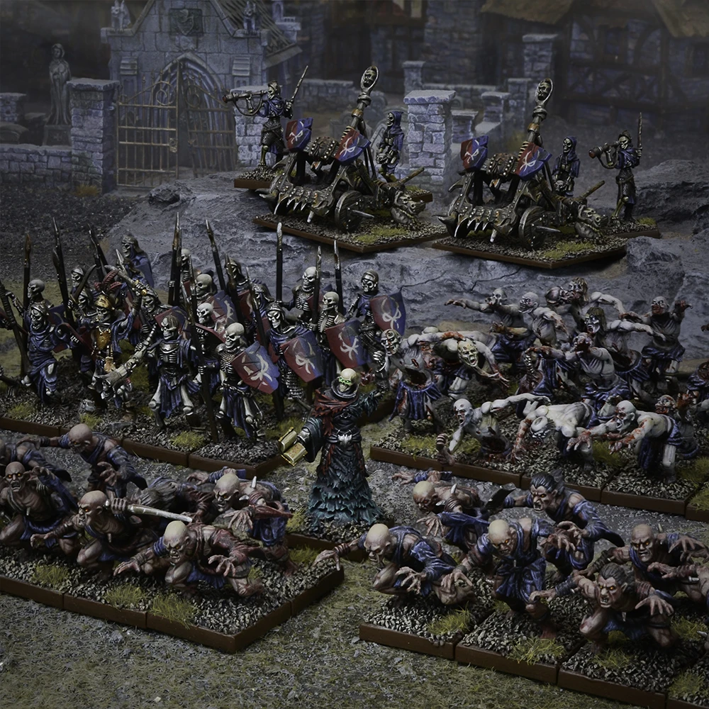 The dead do not rest easy in Mantica, for there are those who would use them as macabre puppets to fulfil their own mortal ends. Skeletal foot troops and cavalry shamble onwards in a relentless tide, overwhelming any who stand in their path.